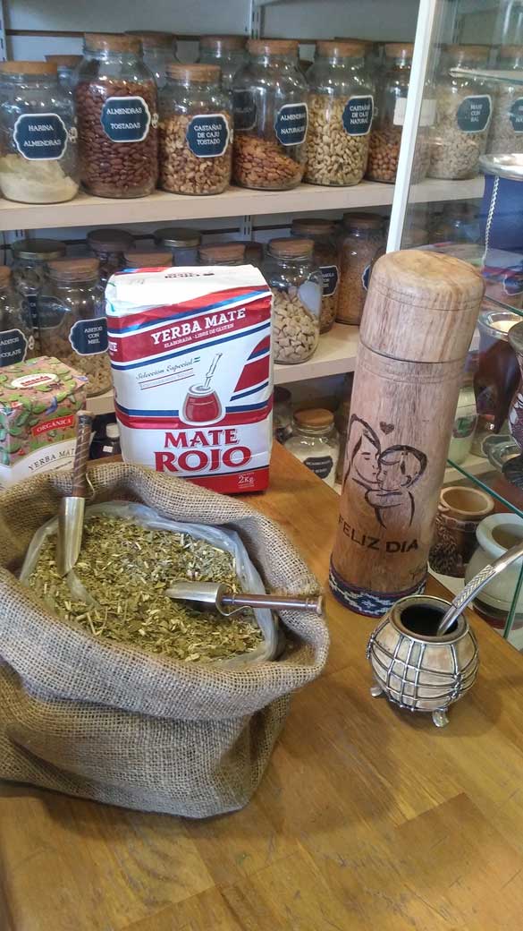 Hace cuatro años una pequeña planta de “ilex paraguariensis” (yerba mate) proveniente de las entrañas del monte tropical misionero fue transplantada en un macetón formando parte de nuestra vidriera. Ella acepto nuestra adopción y ha crecido entre podada y podada. Es nuestro emblema, una síntesis de nuestro amor: la naturaleza y la tierra madre.