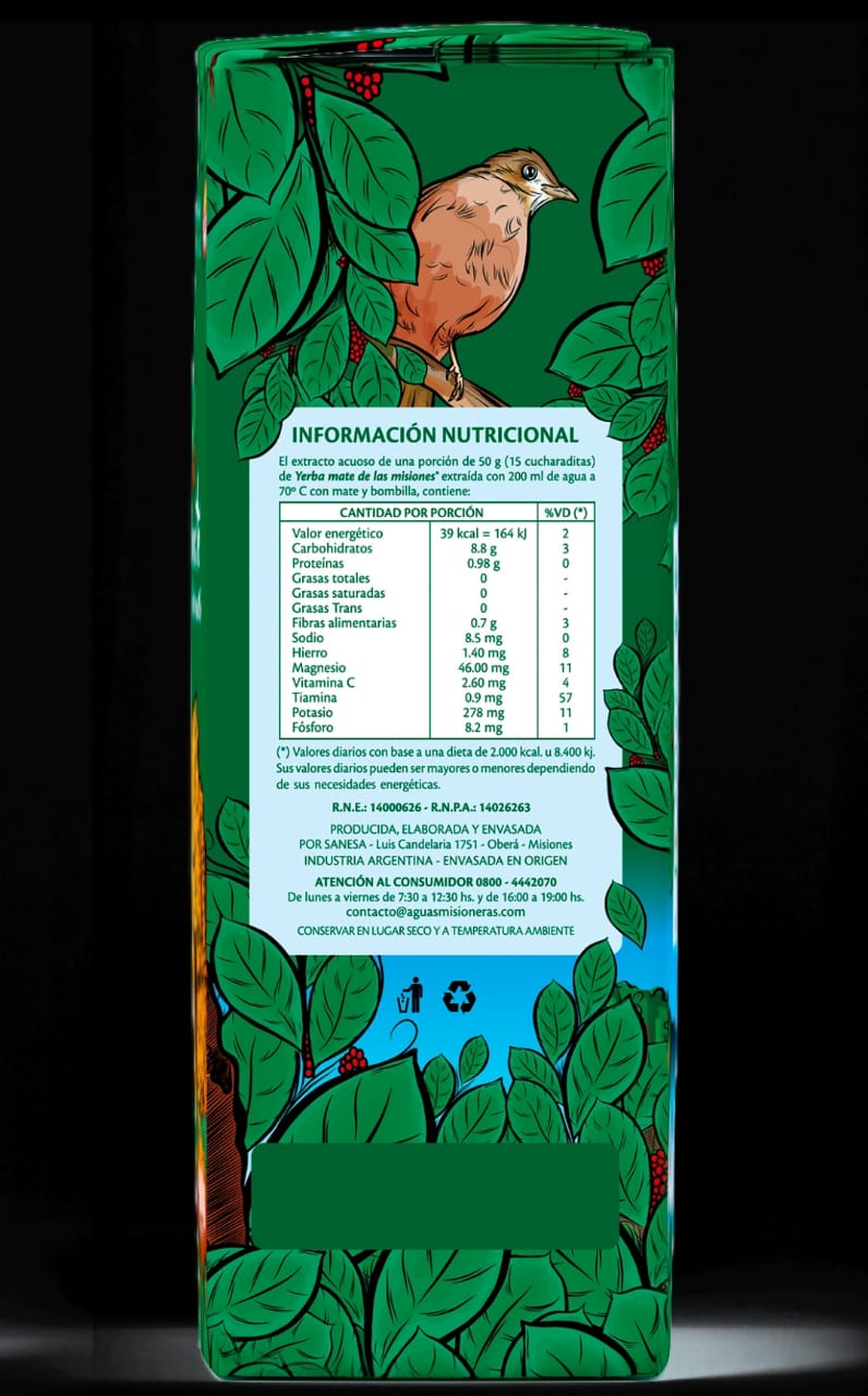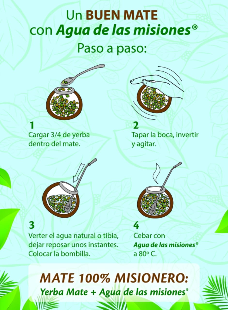 Desde lo profundo de la selva misionera en la Ruta de la Yerba Mate Argentina, Yerba mate de las misiones (R) ofrece un sabor suave y equilibrado para disfrutar de un buen mate de principio a fin, de la mano de Agua de las misiones (R).